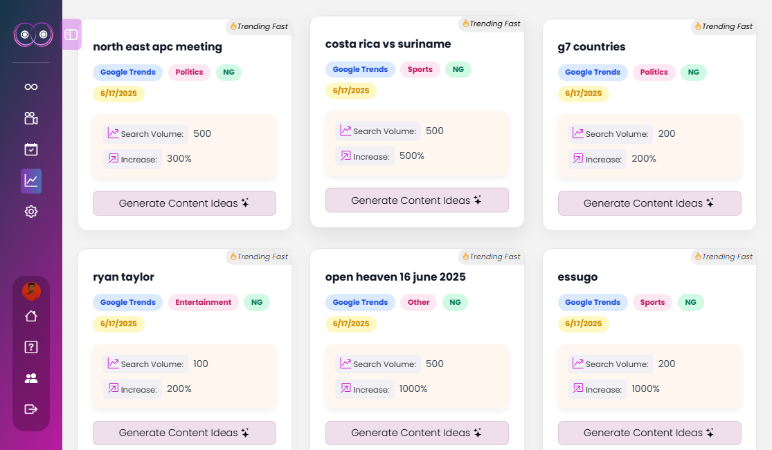 Turn trending topics into ready-to-use content ideas and viral titles in seconds.