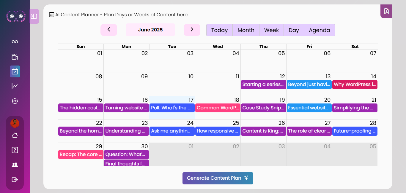 Turn ideas into clear, actionable content strategies. Plan days or weeks of posts with purpose, not guesswork.