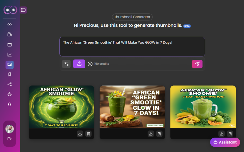 Create custom thumbnails from your titles or ideas, optimized for attention and clarity.